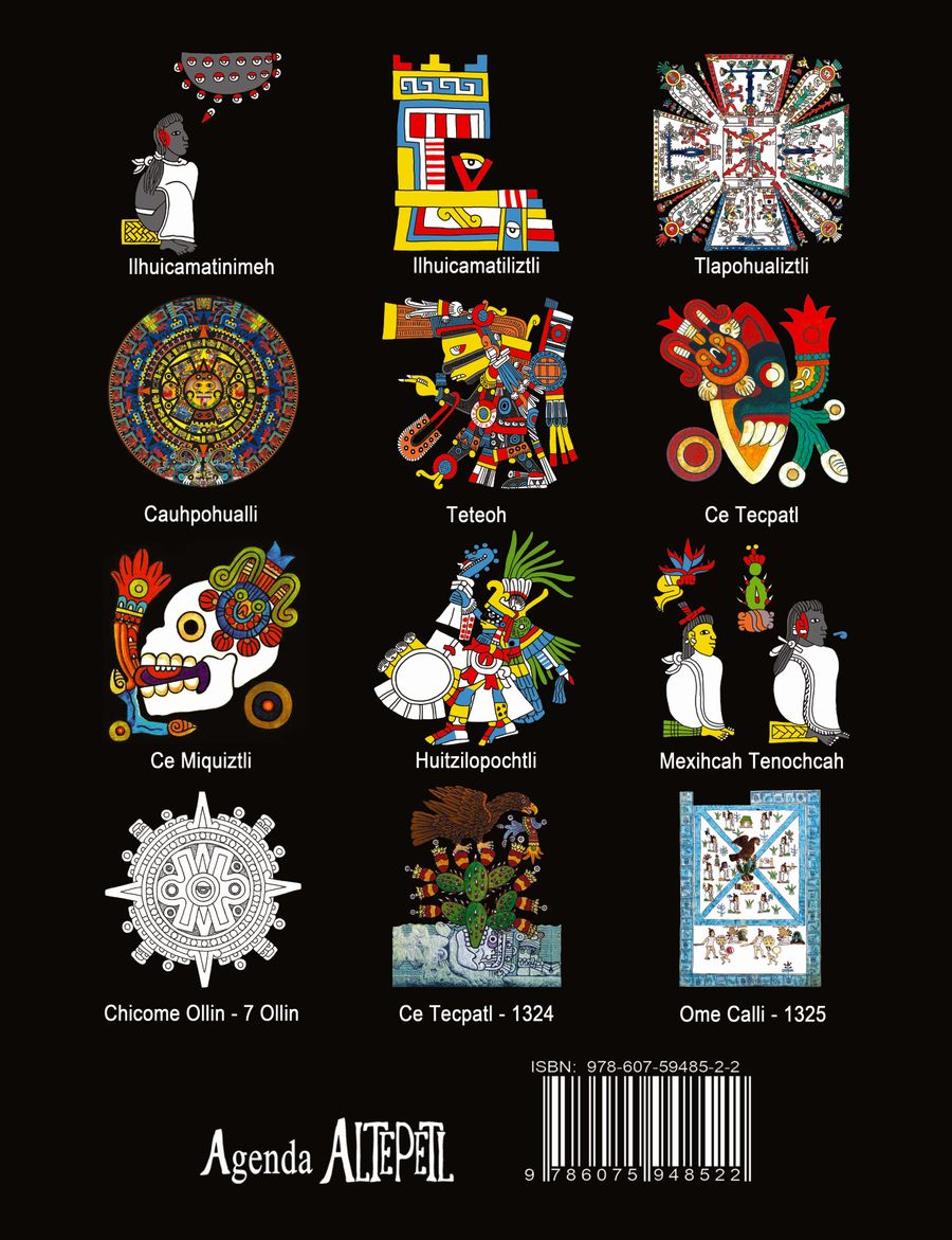 En esta agenda, encontrarán al principio una explicación sobre el funcionamiento de los calendarios mexicah, el Xiuhpohualli y el Tonalpohualli, así como algunos textos, consignas, consejos y poemas relevantes para la temática abordada.