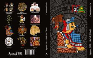 En esta agenda, encontrarán al principio una explicación sobre el funcionamiento de los calendarios mexicah, el Xiuhpohualli y el Tonalpohualli, así como extractos de textos de los cronistas y documentos relevantes para la temática abordada.