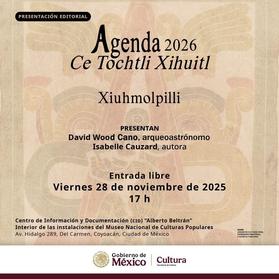 Altepetl Editores presenta la Agenda 2026 "Ce Tochtli Xihuitl. Xiuhmolpilli". Con la participación de Isabelle Cauzard, autora, y David Wood Cano, arqueoastrónomo.
